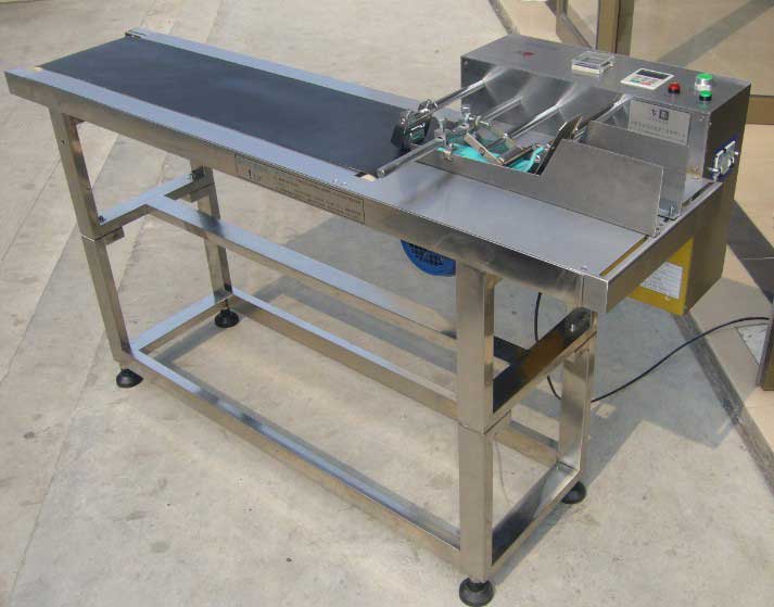 用于将成叠的包装袋或卡类自动分开,成单页传送带上,便于喷码机或激光机进行喷印、喷刻生产日期、批号、防伪标记、图案等,从而减少人工分页的繁琐,充分发挥喷码机、激光机的高速喷印优点,提高喷印工作效率,并配备智能计数自动停机功能,方便生产管理。