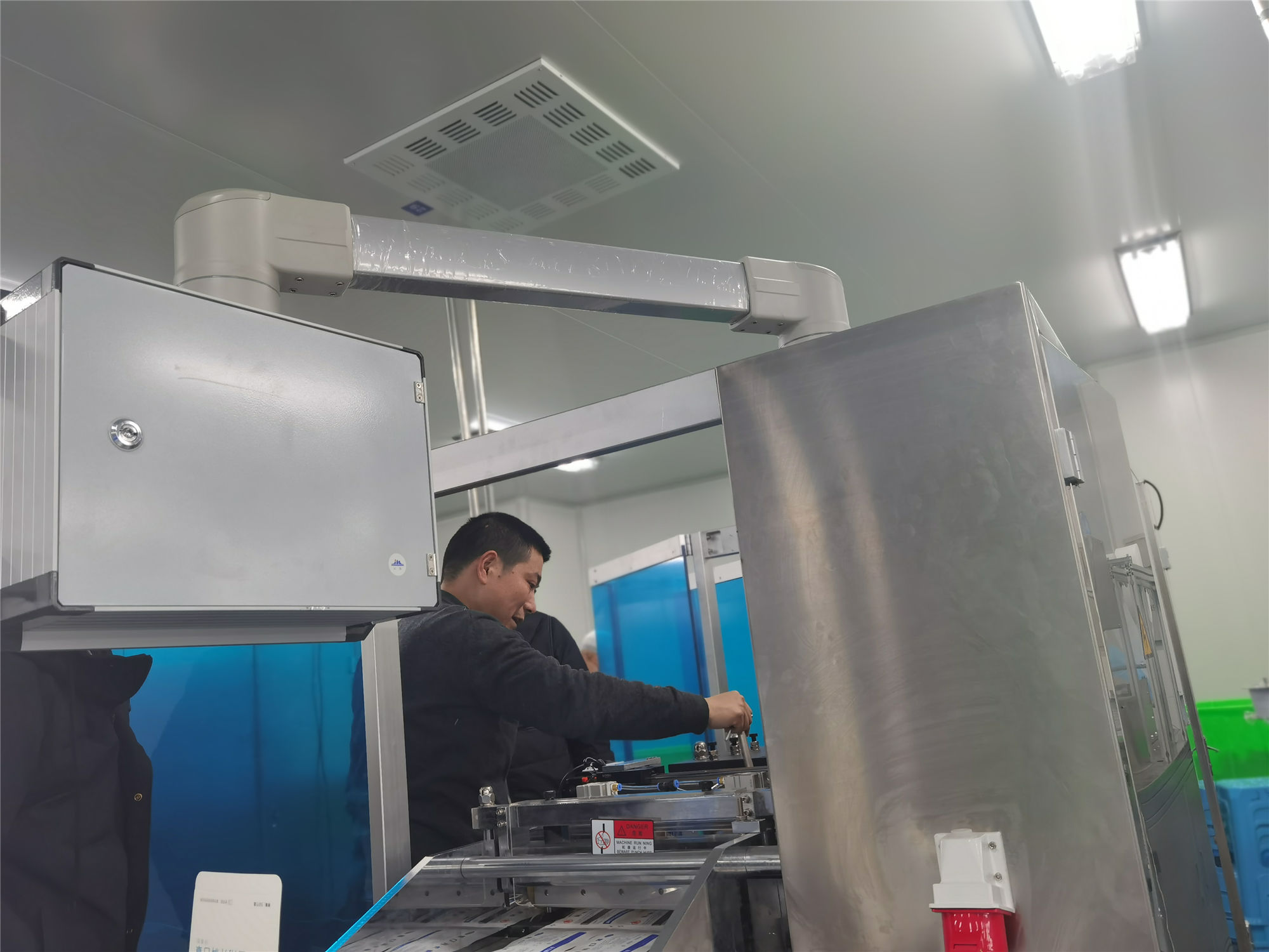 湖南喷码机厂家长沙市海昱达电子设备公司的邱经理在医药行业公司加班给客户安装移动喷码机,助力中国新冠疫情!
